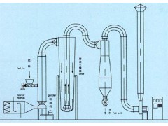 氣流干燥機熱空氣進入干燥器后快速沖擊物料并在瞬間與物料充分混合使物料流態(tài)化與空氣的接觸面積最大化從而迅速蒸發(fā)水份,氣固兩相經(jīng)過除塵分離后得到產品。