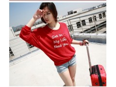 秋裝新品日系寬松圓領慵懶字母長袖套頭蝙蝠袖T恤款針織衫女
